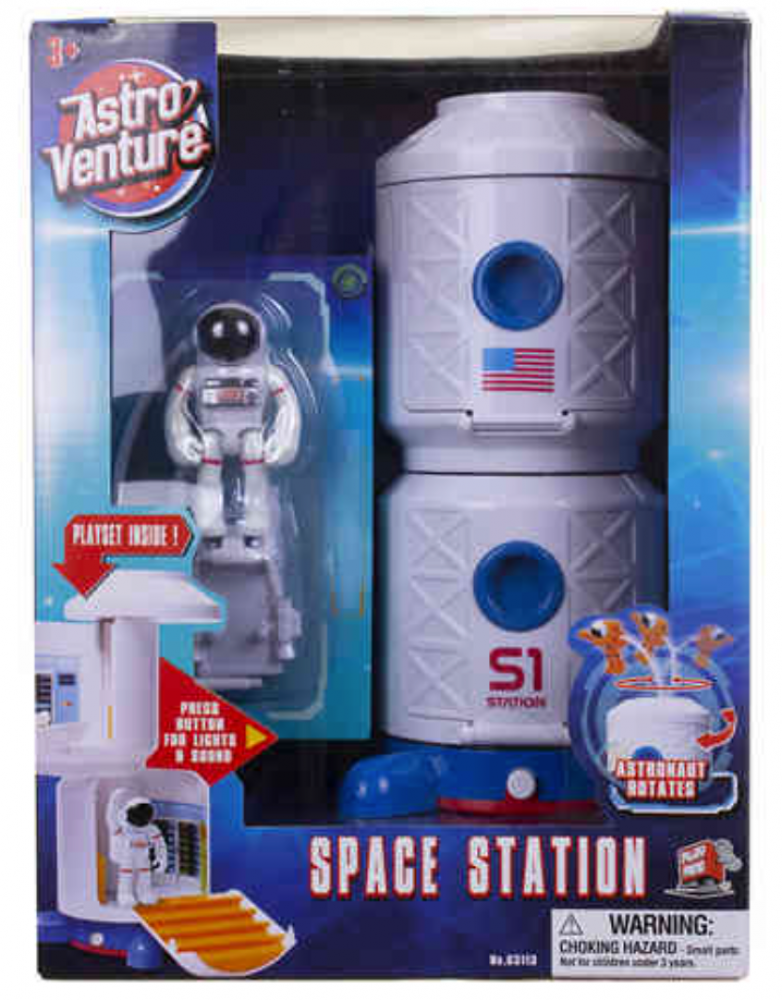 *حبل واحد ، بطاريتان قلويتان مقاس AA 1.5 فولت ، محطة فضاء تعمل بكامل طاقتها مع أضواء وأصوات.
